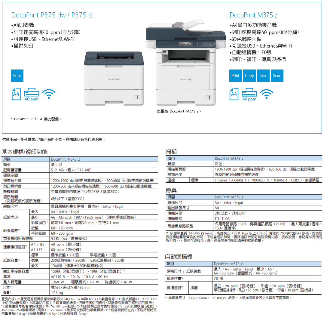 * DocuPrint M375 z 與 DocuPrint P375 dw 配備。